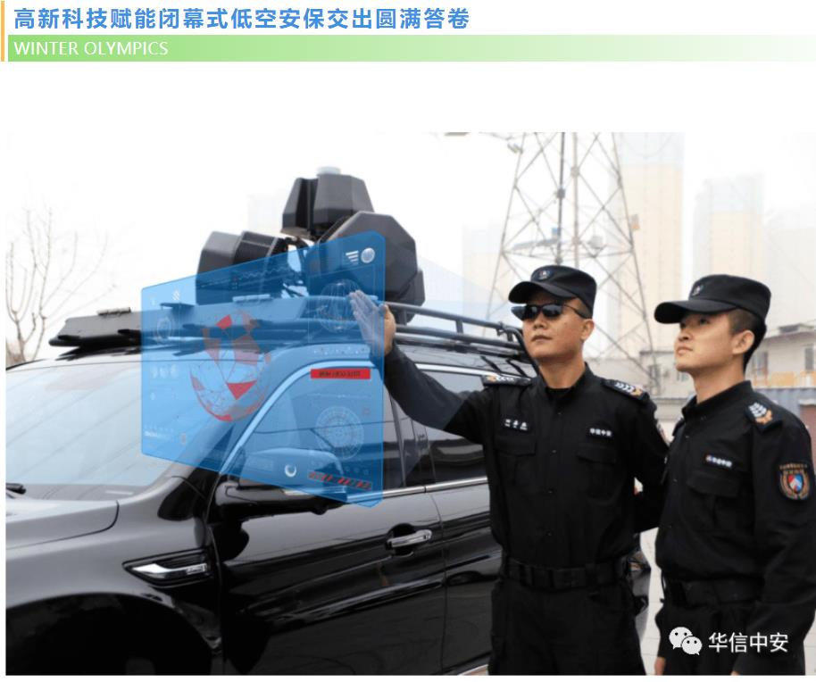 根据2022年冬奥会和冬残奥会安保总指挥部对奥运期间安保工作的指示,为确保北京2022冬奥会和冬残奥会顺利举办,自1月28日零时至3月13日24时期间,在北京市行政区域内,禁止一切单位、组织和个人利用无人机、“穿越机”等“低慢小”航空器进行体育、娱乐、广告性飞行活动和施放气球活动。华信中安无人机技术大队负责配合公安机关完成奥运会期间“低慢小”航空器禁飞管理工作。