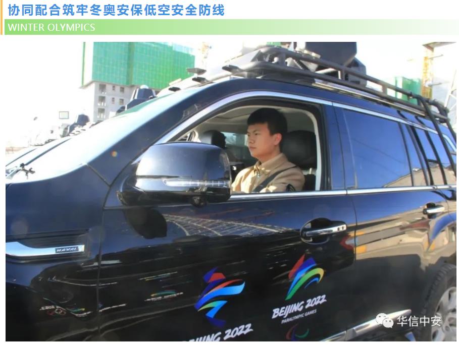 2月20日晚,第二十四届冬季奥林匹克运动会闭幕式在国家体育场隆重举行,历时16天的北京冬奥会圆满落下帷幕。中国兑现了自己的承诺,向世界奉献了一届简约、安全、精彩的奥运盛会。北京这座深厚历史底蕴与发达现代文明交织的国际大都市,为全世界人民带来一场冬奥盛宴,在奥林匹克运动史上留下开幕式期间,华信中安无人机技术大队1、2、3、4、5号反制车按预定路线,执行低空安全防御巡防任务。全体参战人员服从命令、听从指挥,明确分工、各司其职,以对党和人民高度负责的态度,制定详细的工作计划和实施方案,在多个阵地上部署了各类反制装备,充分发挥无人机反制装备的优势性能,严密布防,建立起立体多维低空安全防控网,圆满完成了此次重大活动的低空安保任务。了浓墨重彩的一笔,成为首个“双奥之城”载入史册。