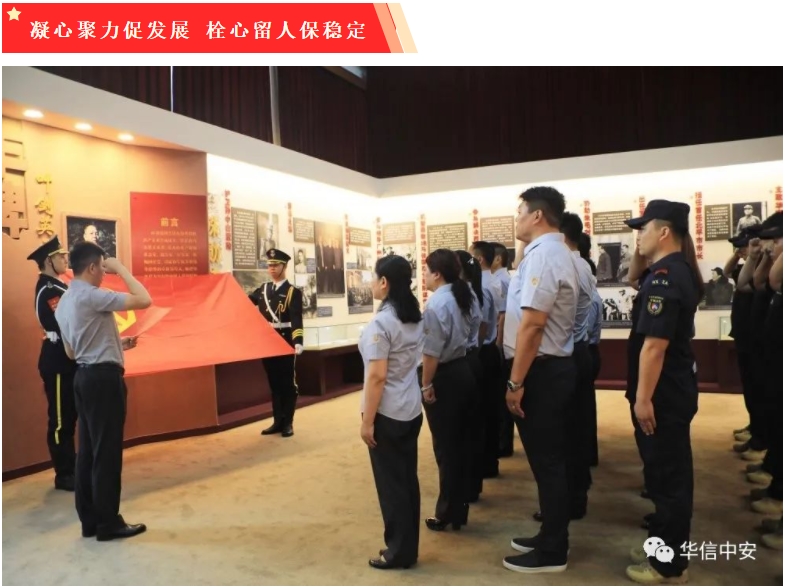 着眼未来发展,建设美好愿景。我们正处在近代以来中国历史上最接近中华民族伟大复兴目标的重要时刻,站在两个一百年的交汇点,华信中安党委将继续以习近平新时代中国特色社会主义思想为指导,不断增强"四个意识",坚定"四个自信",做到"两个维护",突出党组织在职工群众中的政治核心作用和在企业发展中的政治引领作用,把思想政治工作不断深化细化常态化,建设适应保安行业特点、具有华信中安特色的良好政治生态,为企业健康发展提供坚强的政治保障。全体华信中安人也将在党的领导下,秉承军人品质,坚持以务实、专业、可靠、超越的精神经营企业,注重标准建设与行业合作,增强核心竞争力,打造卓越的安保综合服务商,努力满足客户的安全需求,持久为客户创造价值,积极承担社会责任,努力成为中国安保行业的佼佼者。