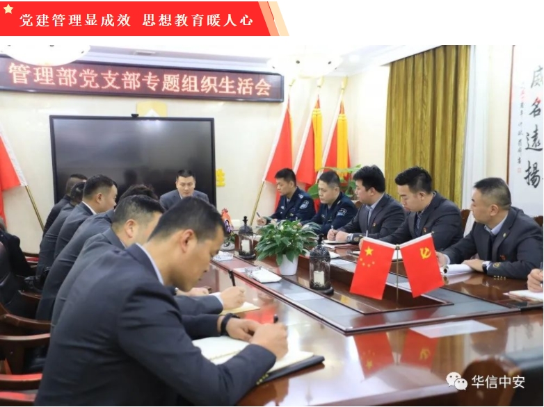为加强对广大保安员的教育和管理,公司党委参照部队管理模式,在保安运营管理中心设立了双主官即总监和政委,管理分部设立经理和教导员,各基层单位设立思想骨干,这种思想政治工作体系成为了全国保安企业的首创。华信中安党委坚持"三、四、五、六、七"工作法,把基层思想政治工作做深做实做细。"三、四、五、六、七"工作法是公司多年开展思想政治工作积累的基本方法,是政工干部必备的素质要求。即:抓住三个工作重点(抓好思想教育,确保队伍稳定;深入基层跟进,营造留人环境;开展创先争优,典型示范引领);实现四个100%(保安员100%持证上岗;新入职保安员100%谈心并有记录;保安员100%进行心理测试;保安员100%录入公安监管系统。实行全覆盖);做好五类重点人的工作(因工资、个人、家庭和情感等问题,可能影响社会安全稳定的各类上访保安员;有精神病史或性格孤僻、行为偏激的保安员;存在矛盾纠纷、不安定因素、可能采取过激行为的保安员;有经常外出、在外留宿、酗酒等违反管理制度的保安员;受过公司行政处罚的保安员);开展"六个一"暖心工程(给新入职的保安员倒一杯水;打一次饭;谈一次心;教一次整理内务;带站第一班岗;向家中报一次平安。让每一个保安员从迈入华信中安那一天起,就感受到公司的人文关怀、人性化管理和家庭的温暖);做到"七种感情贴近"(经常与保安员面对面谈心交流;对保安员进行心理辅导;尊重保安员的选择;理解保安员的诉求;赞美保安员的优长;相信保安员的能力;倾听保安员的心声)。党建、教育齐步走,思想、业务两手抓,不仅留住了保安员队伍中的骨干,留住了关键岗位的人才,还打造出一支业务过硬、作风优良、纪律严明的社会安保生力军,成为维护治安秩序和社会稳定的重要辅助力量。