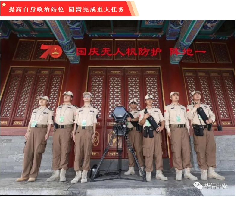 客户单位负责人经常提到,我们之所以选择华信,就是因为你们有党组织、有政工干部,传承了我党思想政治工作的优势,这样的企业政治可靠、值得信赖。为了保障阅兵、庆祝活动核心区低空的绝对安全,2019年4月,由公安部牵头,军队、工信部协同成立无人机联合防控专班,华信中安凭借雄厚的科技沉淀、强大的研发实力、丰富的现场经验、过硬的政治素质、完善的保密体系被选定为国庆70周年阅兵核心区低空防御的重要安保力量。这是一个无尚光荣的使命,这是一个无比艰巨的挑战。为圆满完成党和国家交给的重大任务,面对时间紧、任务重、保障需求特殊等实际情况,乐鱼体育成立了以党委挂帅、智能科技公司担纲、保安公司协同的无人机防御工作组,代号"1001"。从人员选拔、背景审查、保密教育、军事训练到装备操作使用、故障排除、突发事件处置,均由党委把关。为加强安全保密工作,党委书记林永强亲自挂帅,担任保密委员会主任,负责保密教育和队员政审,并直接领导无人机技术大队。大队长兼教导员李逢亮在部队服役二十年,拥有本科学历和无人机驾驶《机长证》,航测遥感与测绘中级工程师,退役后长期从事无人机应用领域研究与实战,是全国安保行业的无人机防控专家。经过前期5个多月的实战演练和阅兵期间的战斗值班,华信中安出色地完成了国庆70周年低空安全保障任务,并先后完成了澳门回归祖国20周年庆祝大会会场、北戴河署期安保、总书记赴潮汕地区考察暨深圳经济特区成立40周年庆祝大会、总书记沪苏两地考察等数十项重大政治活动的保障任务,受到公安机关高度赞扬,国庆70周年活动领导小组、公安部、澳门特区治安警察局、北戴河安保指挥部等单位多次通令表彰,并送来锦旗和感谢信。