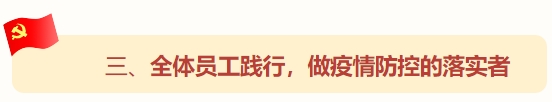 广大中基层干部和优秀保安员是公司建设发展和安全稳定的中流砥柱,要切实发挥主力军作用和主人翁精神,带头学习疫情防控知识,准确解读有关政策措施,科学宣传疫情防护常识,教育引导基层员工和身边群众正确认识对待疫情,科学预防和应对,积极传播正能量。引导员工不造谣、不传谣、不信谣,不发布、不评论、不转发任何未经权威机构和权威媒体认证的疫情信息,及时制止在任何媒介上发布不实信息的行为,共同维护社会公共秩序。
