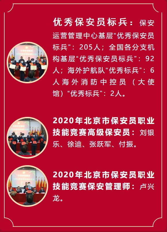 在过去的一年里,华信中安人勤奋敬业,扎实工作,拼搏进取、创先争优,先后涌现出了一大批先进个人和先进集体,华信中安(北京)保安服务有限公司总经理邢鹏同志宣读了《关于对2020年度先进集体和先进个人予以表彰的决定》