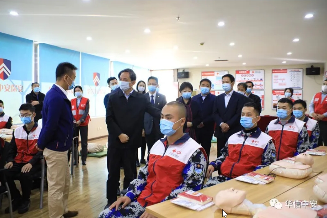 北京市卢彦副市长、陈蓓副秘书长一行莅临华信中安视察红十字会应急救护培训工作开展情况