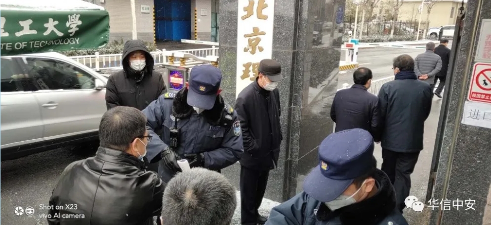 作为门岗的安保人员,只要走上值班岗位、进入工作状态,一个接着一个的人员体温测量、查证登记,一辆接着一辆的车辆验证核实,几乎没有一点闲暇时间。守住校园安全的大门就是为北京理工大学筑起疫情防控第一道防线,容不得一丝疏忽大意。自疫情爆发以来,华信中安驻北京理工大学保安队门岗平均每天登记测温放行千余人次,劝阻不符合入校规定人员若干。刘加滨说自实施疫情防控部署这段时期以来,我们很感谢留校师生员工能够积极配合门岗检查登记工作,他们的微笑就是对我们最大的支持和肯定,我们也深切感受到很多人从开始对我们工作的不理解不配合到给予充分支持的变化。在具体的工作中,绝大部分人员都很理解和支持我们的工作,主动出示证件,积极配合登记。但疫情爆发初期,病毒蔓延还没有引起大家的足够重视,也有不少人抱怨:"现在进个校门怎么这么麻烦"对我们的登记、检查、测温抱有抵触情绪。我们的队员需要耐心解释劝阻,并悉心提醒戴好口罩尽量减少外出。后期随着防疫形势的严峻以及宣传力度的加大,大家对我们保安员的工作给予了充分的肯定,不少家属院的职工说:"看到你们坚守岗位,就说明我们的校园是安全的,我们心里也踏实不少。"甚至有很多素不相识的陌生人看到保安员冰天雪地里执勤站岗,多次为我们队员送来了暖宝宝、矿泉水和宝贵的防疫物资。大家的理解和支持就是我们工作最大的动力也激发了队员们更大的工作热情。