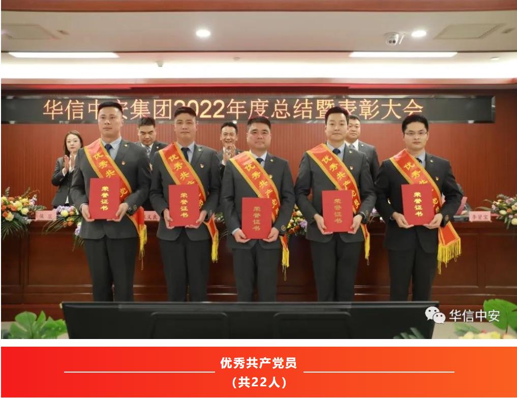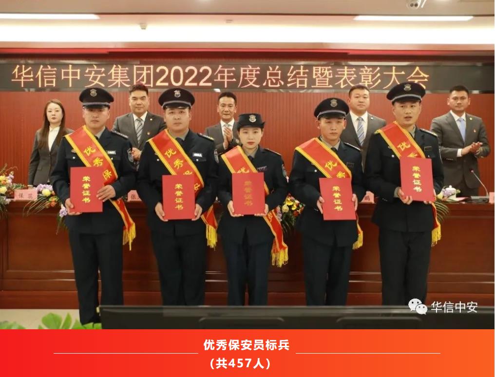 2022年,是异常艰难的一年,是充满奋斗的一年,也是铸就辉煌的一年。一年中,在集团各个工作岗位上,涌现出了一大批忠于职守、兢兢业业、勇挑重担的优秀基层管理干部和优秀保安员,他们用实际行动诠释着新时代华信中安人的风采,会上,集团保安运营管理中心总监、公司总经理邢鹏同志宣读了《2022年度乐鱼体育先进集体和先进个人表彰决定》:经民主评议和各单位推荐,报请集团党委和集团办公会研究决定评选出先进党支部5个;抗疫先进党支部1个;优秀共产党员22人;集团机关先进集体9个;全国分支机构先进集体15个;基层先进集体59个;机关先进个人29人;全国各分支机构先进个人34人;基层先进个人161人;优秀保安员标兵457人。