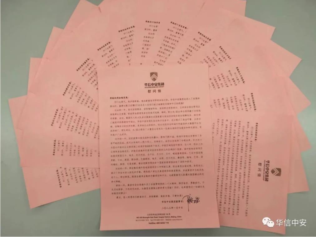 为感谢海外员工的辛勤付出,以及海外员工家属的支持和理解,在新春佳节到来之际,华信中安国际业务运营与管理中心按照集团党委、工会的统一部署安排,将为驻外员工家属准备的春节慰问品及慰问信,邮寄到每位海外员工的家中。向对乐鱼体育发展给予支持的广大驻外员工家属,表示衷心的感谢,并为他们送上新春佳节的美好祝福。慰问中华信中安国际业务运营与管理中心领导表示:疫情当前,海外员工在千里之外冲锋陷阵、攻坚克难,用行动诠释着奉献担当精神,为公司海外事业发展作出了很大的贡献。公司一直铭记在心、充满感激,公司将全力为海外员工及家属排忧解难,做海外员工坚强的后盾。并希望家属们继续一如既往地关心、支持海外员工,一如既往地支持公司海外业务的发展。接下来,公司党委、工会将持续关注海外员工的思想动态,加强在日常生活关怀、解决海外队员急难愁盼等方面的帮扶力度,用真情和行动让海外员工真真切切感受到公司大家庭的关怀与温暖。