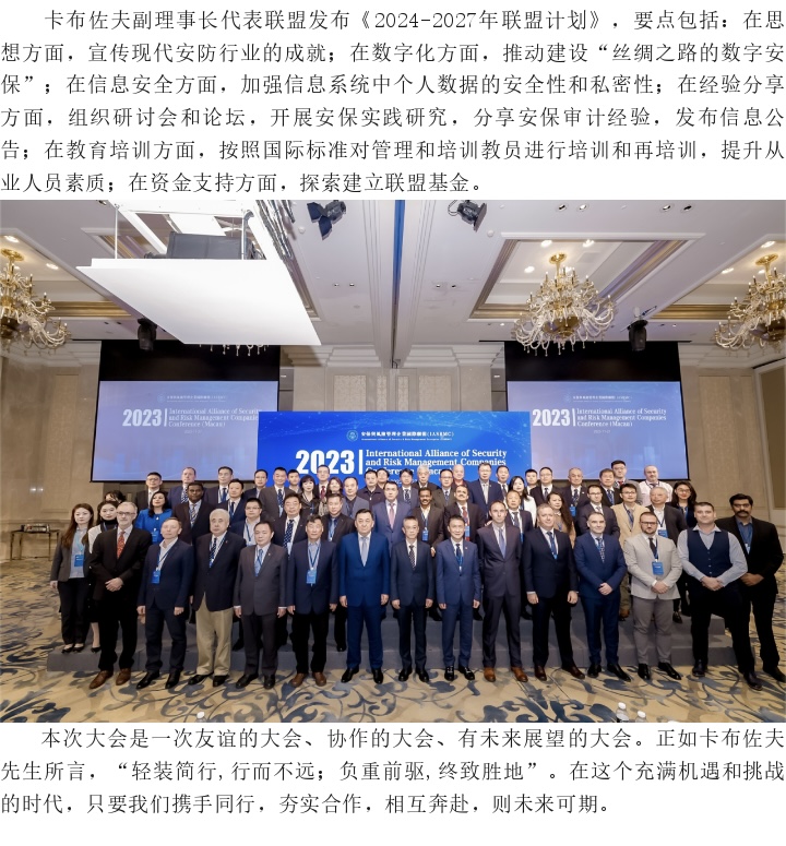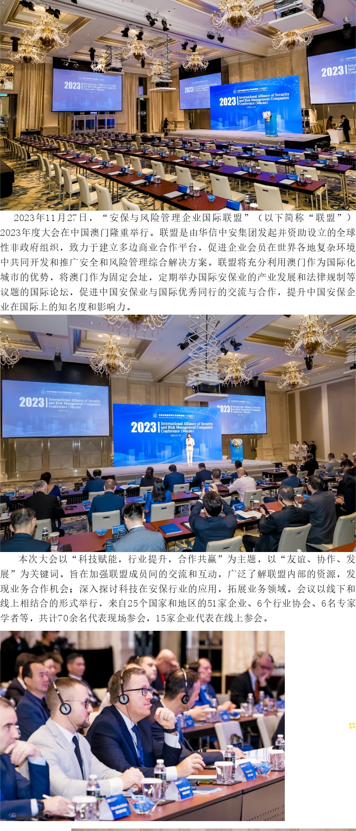 安保与风险管理企业国际联盟2023年度大会在中国澳门隆重举行